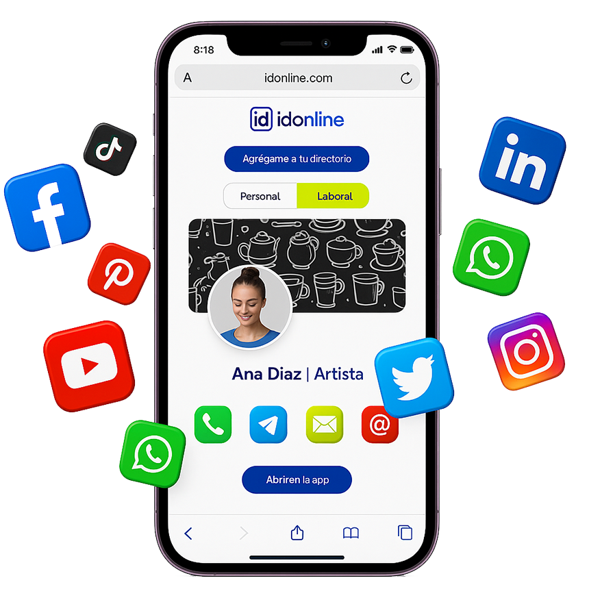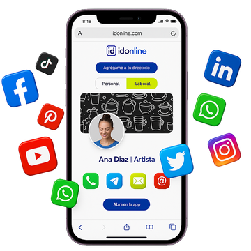 IDONLINE es una solución inteligente que integra tarjetas y botones digitales con tecnología NFC y código QR. Comparte tu información profesional o personal al instante, de forma moderna, segura y sin contacto, simplemente acercando tu dispositivo.